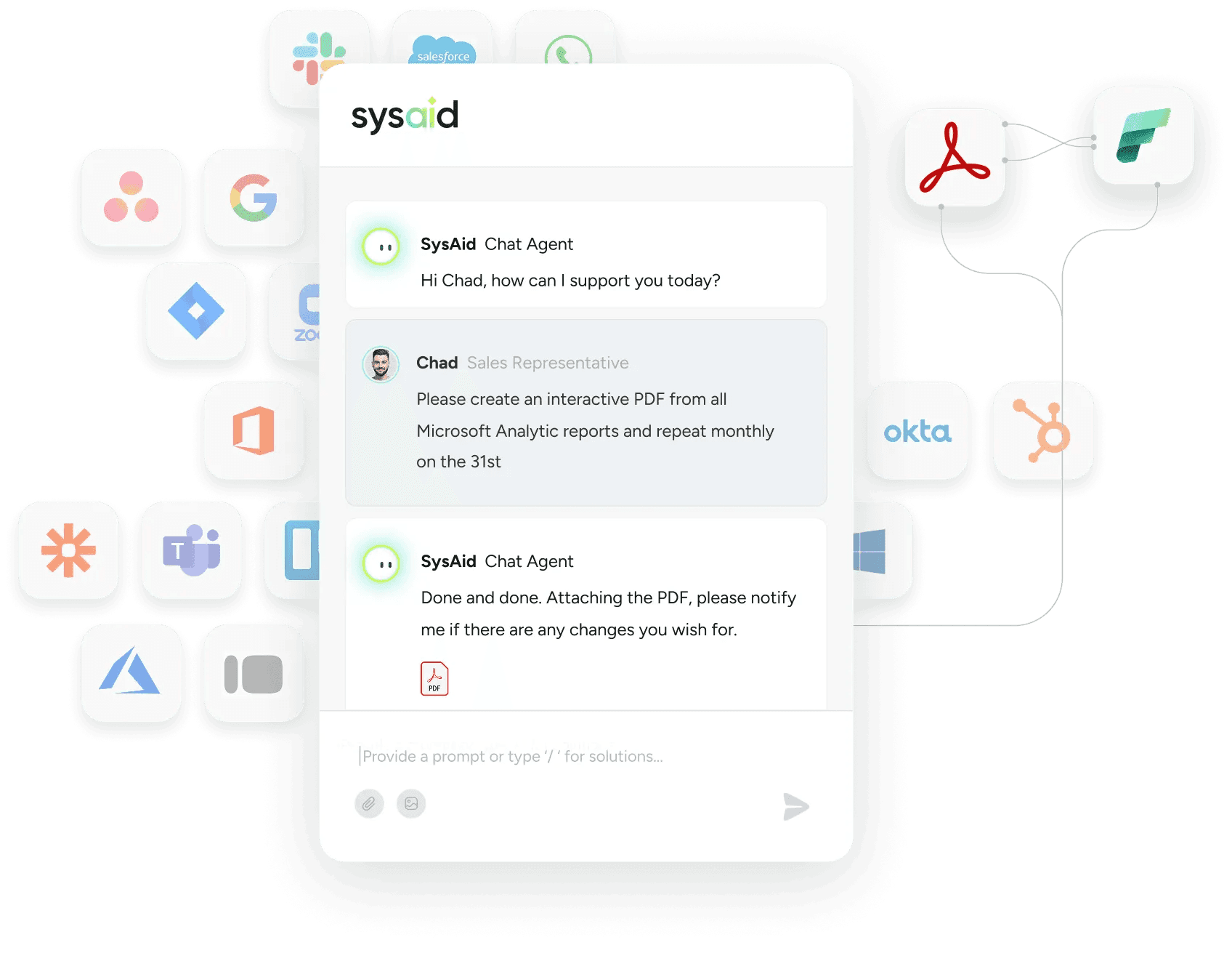 Diseñado específicamente para ITSM, SysAid AI está entrenado en tickets de TI, flujos de trabajo y SLA reales mientras está protegido por estrictos controles de acceso y alineado con los estándares de la industria.
